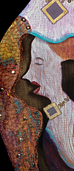 Childhood Dreams collage, paint, fabric on wood 46 x 30 x 1 Bonnie Meltzer created this artwork with inspiration from "Idaho Toccata" by composer Cynthia Gerdes. Both were shown/heard at the performance of women of Cascadia Composers (local chapter of NACUSA). The music is a portrait of the sounds Gerdes heard as a child in Idaho. See more pix here |