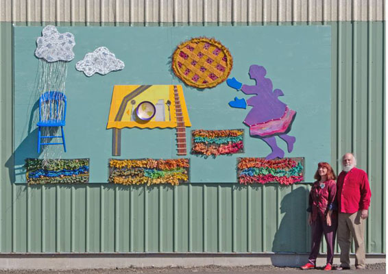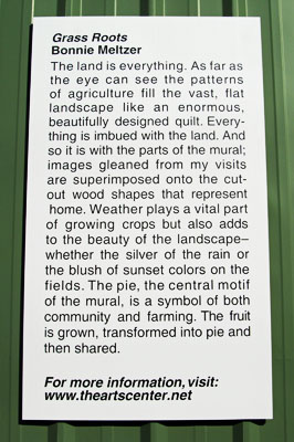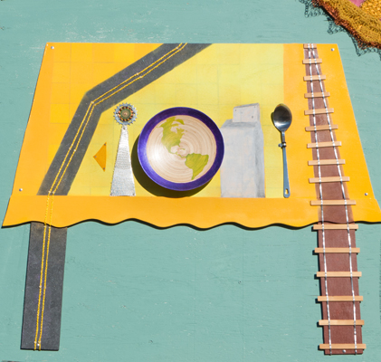 GRASS ROOTS Art in Rural Communities Bonnie Meltzer was selected by the Corvallis Art Center and the city of Halsey to create an installation as part of the Art in Rural Communities program. Motifs evolved from small town hospitality, grass seed farms and weather. More views to the right. |