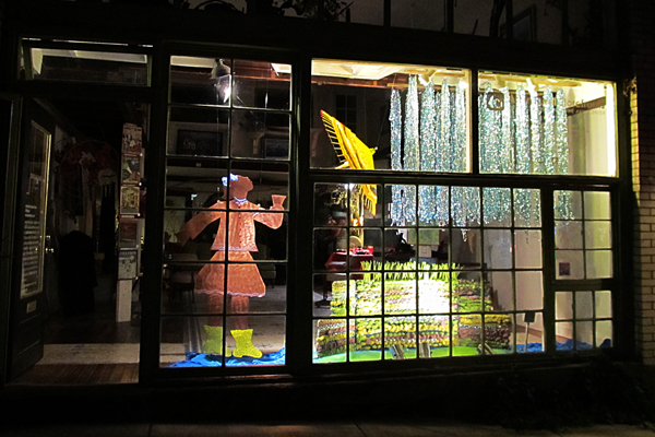 From the inside of the store. The owner requested that the installation did not block all the light coming into the store and that it would be inviting from the inside as well as from the outside.