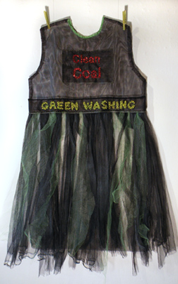 COAL TRAIN: Who Pays crocheted wire and magnetic tape, found objects, paint, collage 29 x 15 x 14 Coal from the Powder River basin in Montana/Wyoming on its way to Asia would travel through the cities and countryside of Idaho, Oregon and Washington by train . At the ports the trains are unloaded onto mega-ships. There are many environmental issues involved with train transport of coal and oil. One revolves around traffic and who pays for the signals and upgrades at the grade crossings. Not the railroads. There is an enormous cost to the health of citizens from the dust causing pollution and fire hazard of transporting coal and oil. . |