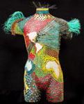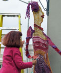 As part of an exhibition Meltzer set up an impromptu studio. People shopping at SCRAP for recycled materials could wander into the exhibition and participate in this work-in-progress by attaching beads with pins It was easy enough for small children and engaging enough for adults. This was the first collaborative workshop. See more about SCRAP here. See sculpture here. |