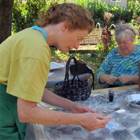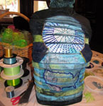 During her Sou'wester Residency Meltzer held an open workshop during her Sou'wester Residency on the Long Beach Peninsula in Washington. On the dining table in the historic, antique filled lobby participants crocheted, pinned beads to the sculpture and threaded buttons on recycled wire heddles (loom parts) for later attachment. This sculpture is still in progress. See the evolution of it here. |
